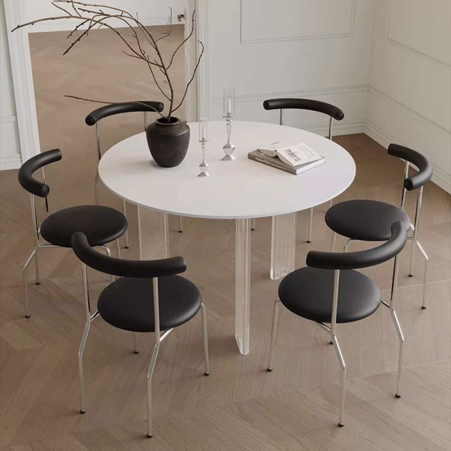 Meja Makan Putih Hitam Murni Rumah Tangga Suspended Tipe Kecil Acrilik Negosiasi Meja Makan Meja Bundar Santai Kombinasi Meja dan Kursi Batu