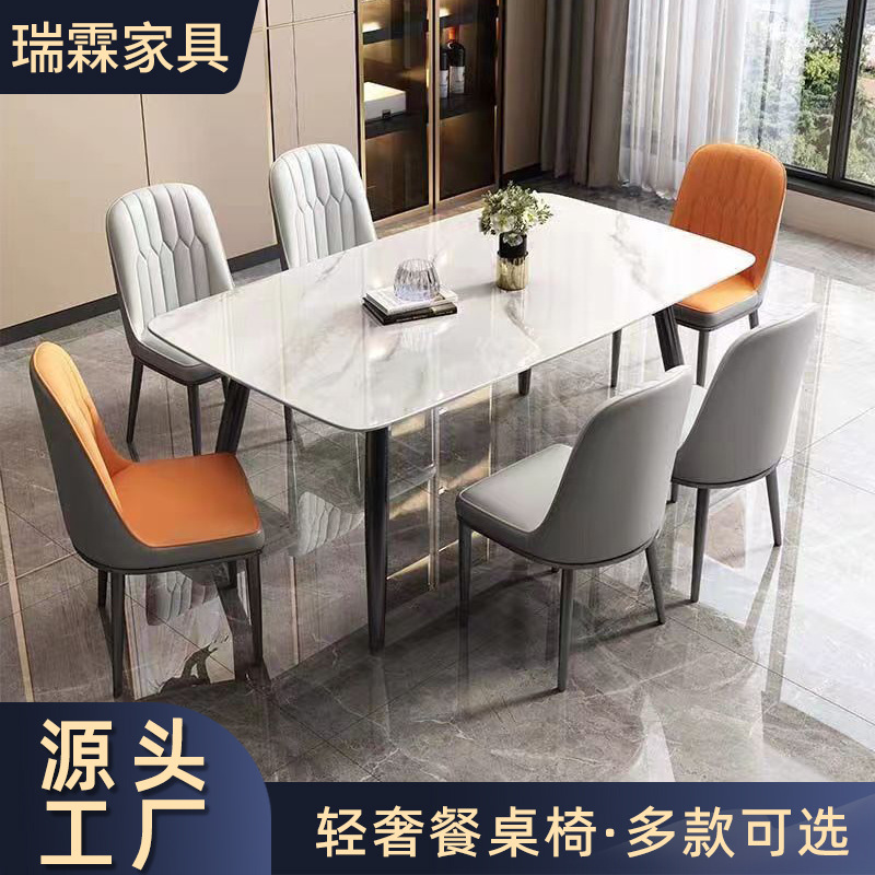 Meja Makan Papan Batu Ringan Mewah Modern Sederhana Rumah Tangga Rumah Tangga Kecil Meja Makan Ruang Tamu Sederhana Meja Makan Persegi Panjang Kombinasi Meja Makan dan Kursi