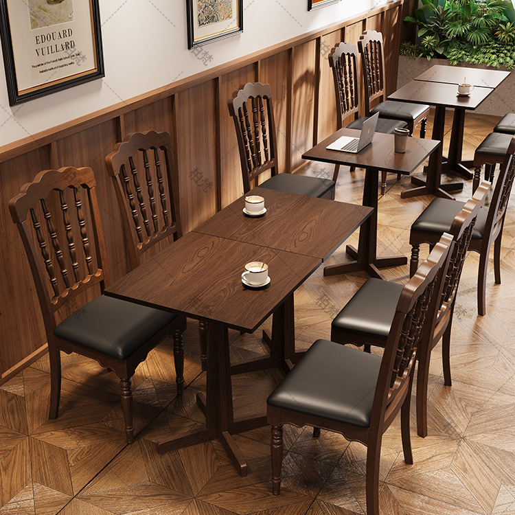 Meja Pendek Sofa Retro Prancis Meja Kayu Solid Meja Perempat Meja Kopi Meja Dessert Toko Kafe Meja Makan Kursi Kombinasi