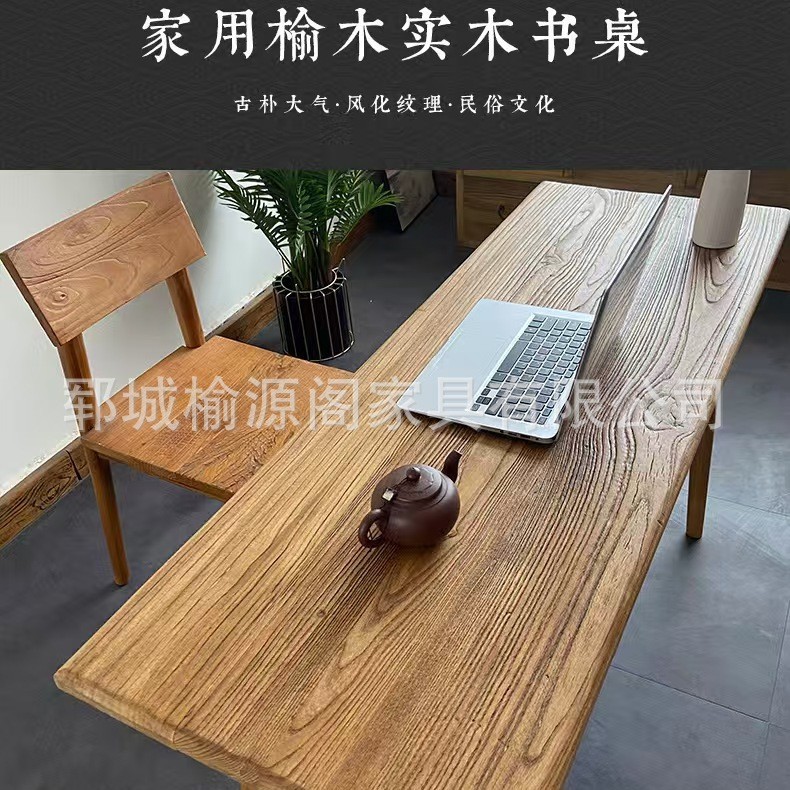 Meja Makan Elm Tua Meja Kerja Rumahan Kayu Buatan Tangan Kapasitas Besar Persegi Dua Penggunaan Kayu Modern Sederhana Meja Kerja Elm Tua