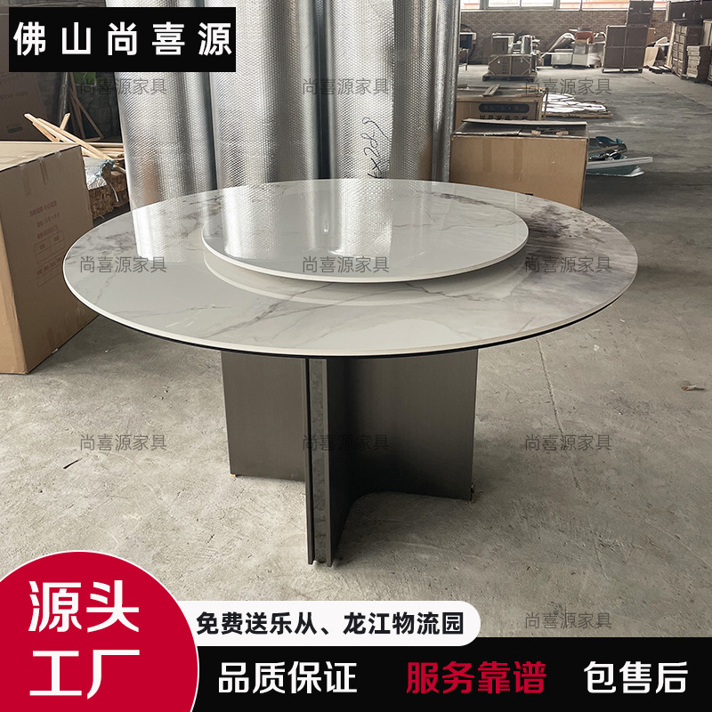 Kombinasi Meja Makan dan Kursi Listrik Gaya Tiongkok Baru Meja bundar besar dengan meja putar papan batu kayu solid 2,4 meter