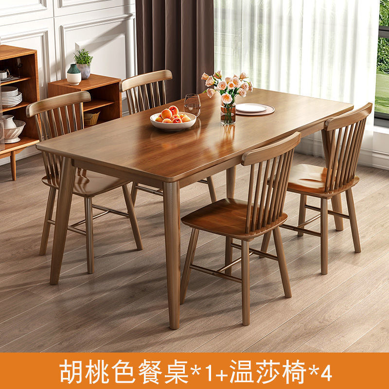 7W Meja Makan Kayu Solid Rumah Tangga Meja Meja Persegi Panjang Mewah Sederhana Modern Meja Negosiasi Teh Warna Kenari Set Kursi Hiroshima