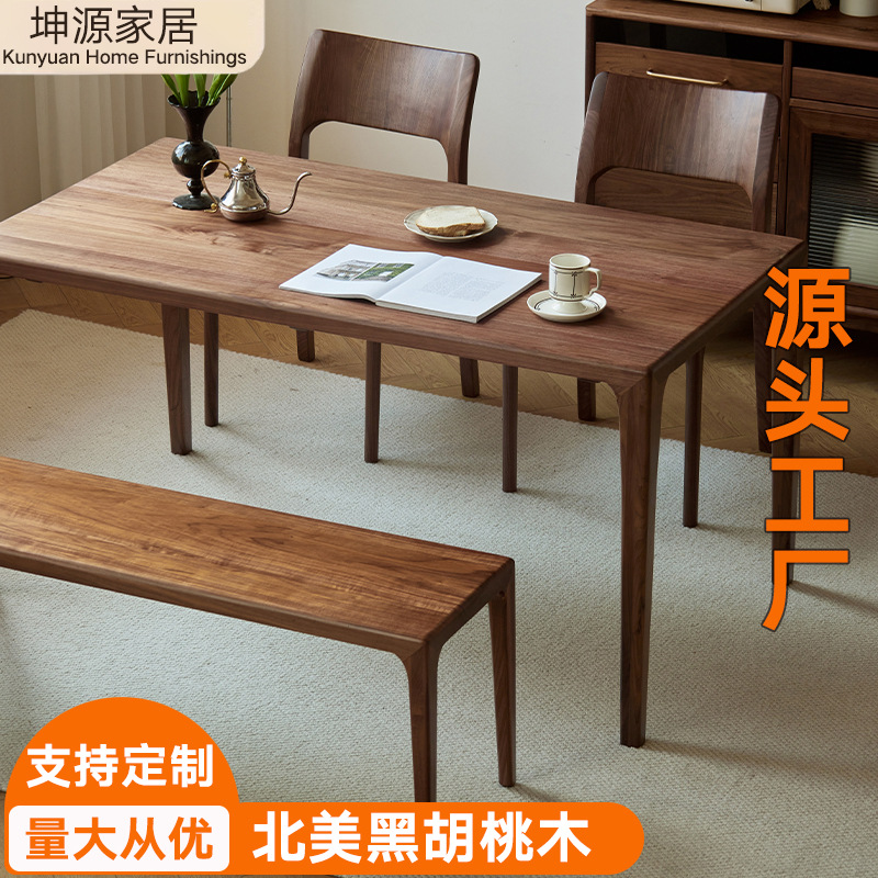 Meja Makan hitam kenari Amerika Utara dan kursi kombinasi tanggam persegi panjang meja teh kayu padat murni meja log