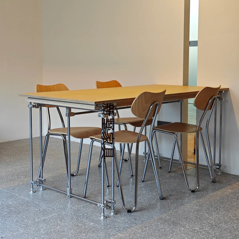 Meja Makan Papan Laut Birch Abad Pertengahan Meja Makan Rumah Tangga Stainless Steel Meja Komputer Kantor Sederhana Meja Persegi Panjang