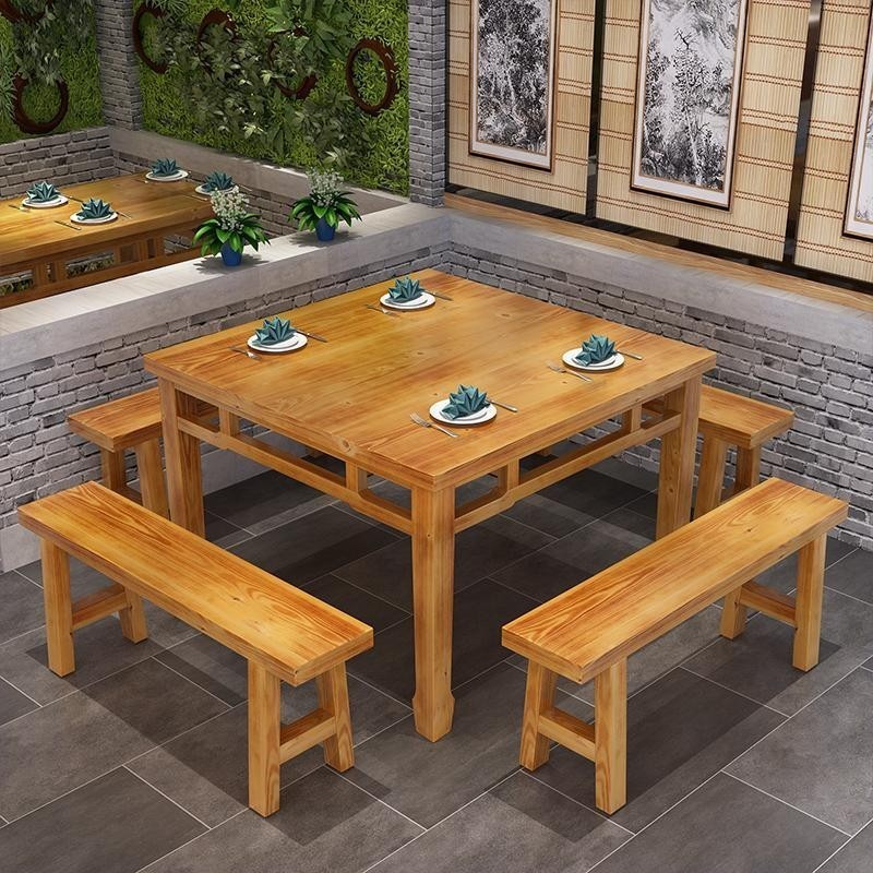 Meja Makan Kayu Solid Meja Makan Restoran Kombinasi Kursi Meja Makan Meja Sifang Toko Mie Meja Persegi Nongjiale Delapan Dewa Meja Persegi