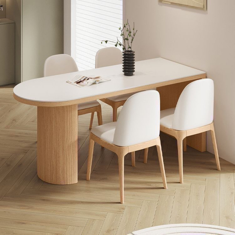 Meja Makan Papan Batu Kayu Solid Rumah Tangga Ukuran Kecil Modern Sederhana Mewah Ringan Krim Kayu Eropa Utara Setengah Bulat Dinding