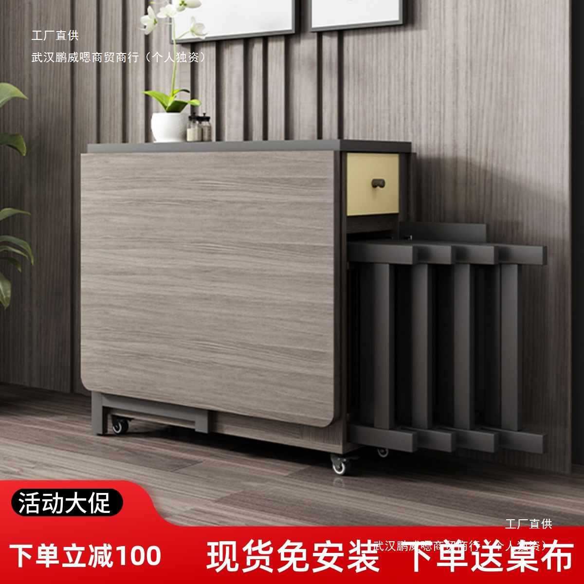 Meja Makan Papan Batu Tipe Rumah Tangga Kecil Penyimpanan Teleskopik Kayu Solid Variabel Persegi Panjang Ringan Persegi Sederhana Modern