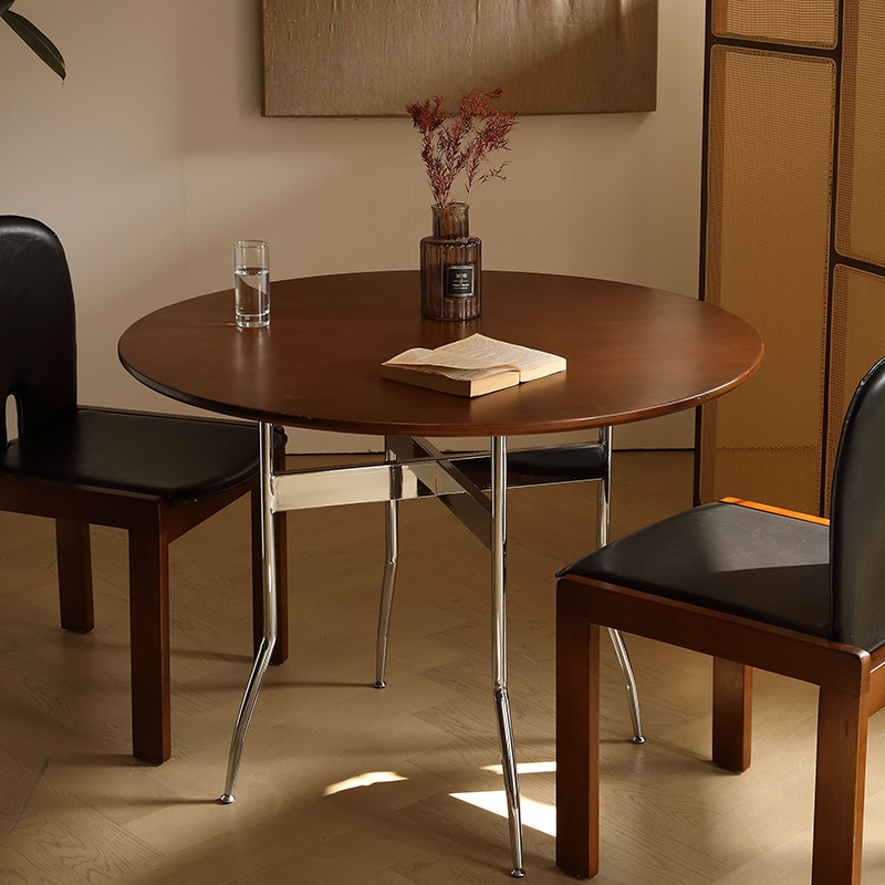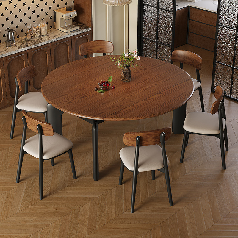 Meja Makan Kayu Solid Gaya Pertengahan Meja Makan Meja Lipat Retro Meja Meja Makan Bentuk Bulat Kursi Kopi