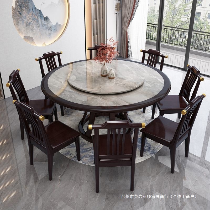 Meja Makan Batu Papan Gaya Tiongkok Baru Meja Meja Bundar Kayu Solid Meja Makan Meja Bundar Besar Rumah Makan Rumah Sederhana Modern Kombinasi Kursi