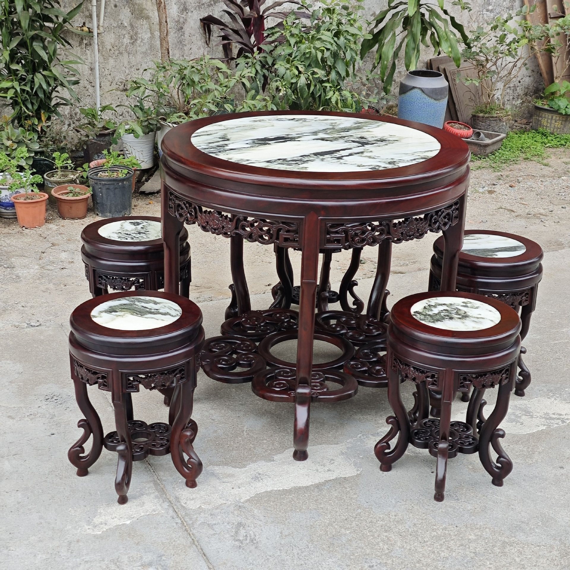 Ebony Lima Anak Dengke Meja Bundar Meja Makan Kayu Merah Klasik Gaya Tiongkok