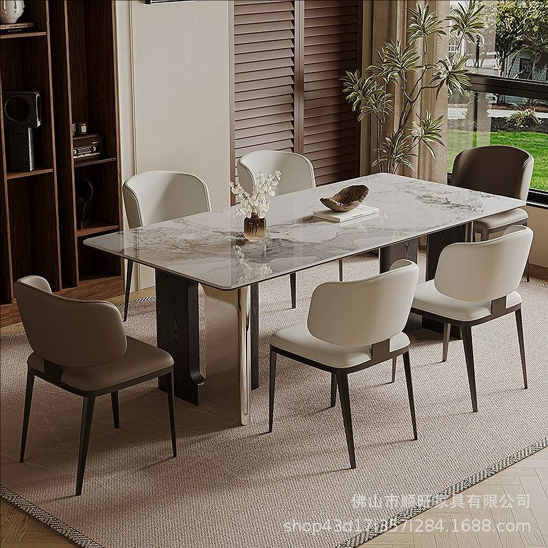 Meja Makan Tipe Rumah Kecil Papan Batu Mewah Ringan Gaya Italia Meja Makan Ruang Tamu Kelas Atas Meja Makan Persegi Panjang Model Baru 2025 Minimalis Modern