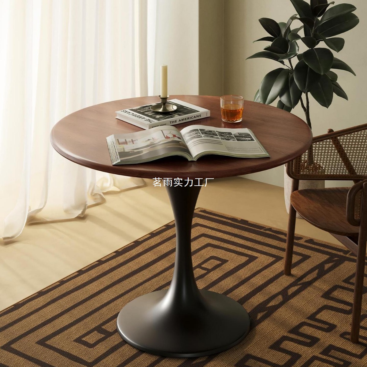 Meja Meja Bundar Kayu Solid Retro Walnut Bunga Tulip Retro Eropa Utara