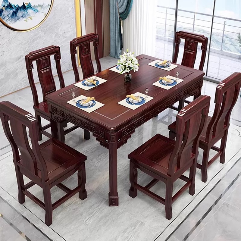Meja Makan Kayu Solid Kayu Ragi Gaya Tiongkok Baru Meja Makan Barat Persegi Panjang Tipe Rumah Tangga Kecil Meja Makan Berukir Klasik