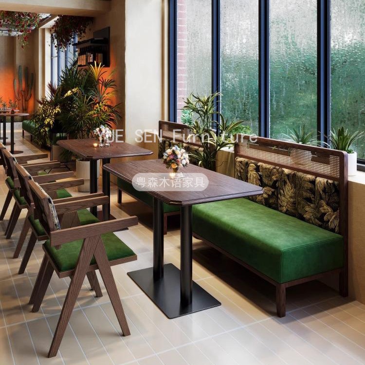 Meja dan Kursi Kayu Solid Rotan Jacquard Rumah Teh Gaya Pertengahan Sofa Blok Kartu Bisnis Restoran Kopi Kopi Malam