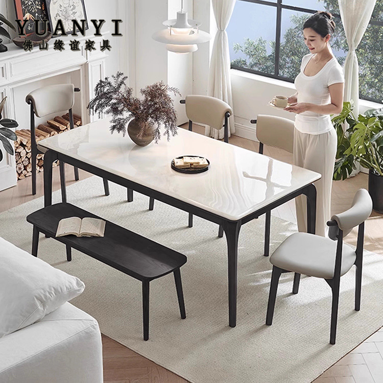 Meja Makan Model Papan Batu Mewah Ringan Gaya Amerika Meja Makan Ruang Tamu Rumah Tangga Tipe Apartemen Kecil Persegi Panjang Kombinasi Meja Makan Modern Sederhana