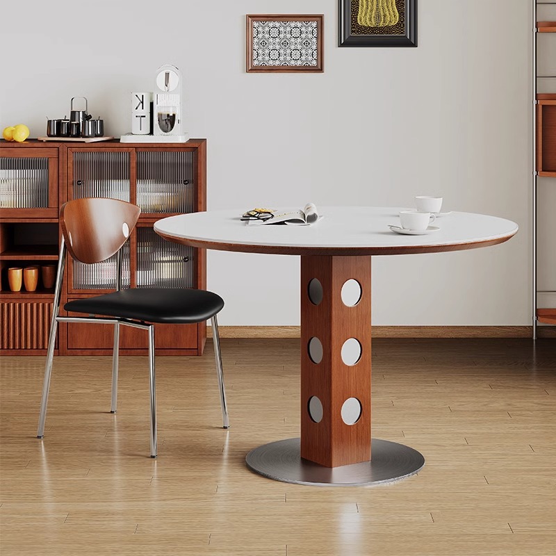 Meja Bundar Papan Batu Berg Gaya Pertengahan Meja Makan Retro Logam Kaki Bulat Meja Makan Papan Batu Kayu Solid Bauhaus Eropa Utara