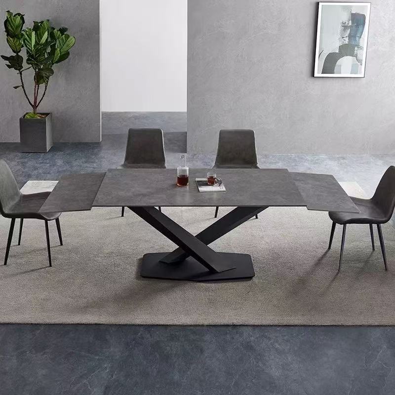 Meja Makan Papan Batu Persegi Panjang Dapat Diteleskopik Rumah Tangga Gaya Italia Minimalis Modern Ringan Gaya Mewah Ukuran Besar dan Kecil Kombinasi Meja Makan