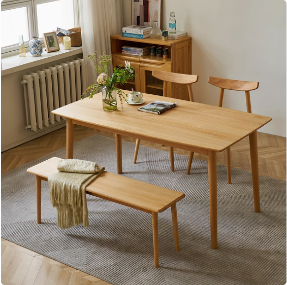 Meja Makan Kayu Beech Meja Makan Barat Persegi Panjang Tipe Rumah Tangga Kecil Kayu Asli Gaya Jepang Kombinasi Meja Makan Kayu Asli