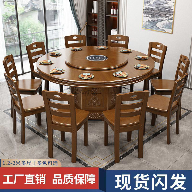 Bw1 Meja Bundar Kayu Solid Rumah Tangga Meja Makan Kombinasi Kursi Meja Makan Gaya Tiongkok Dapat Penyimpanan Meja Makan dengan Meja Berputar Hotel Hotel