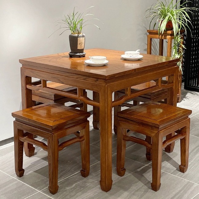 Meja Persegi Kayu Solid Kayu Elm Tua Kombinasi Meja Makan Persegi Meja Makan Perabotan Pedesaan Vintage Meja Makan