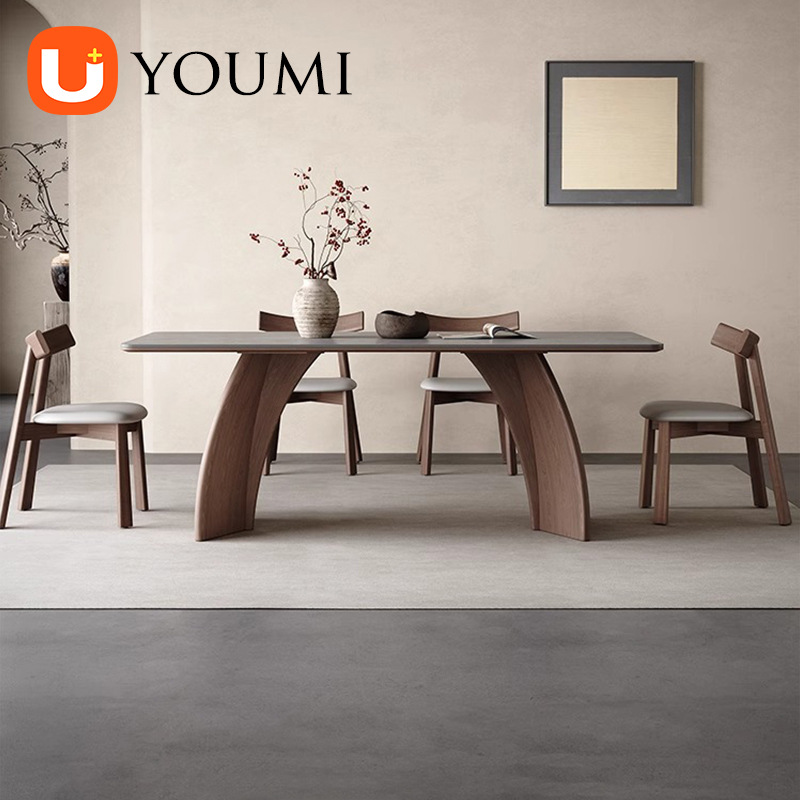 Meja Makan Papan Batu Kayu Solid Modern Sederhana Warna Kenari Meja Makan Macchiato Persegi Panjang Minimalis Gaya Italia