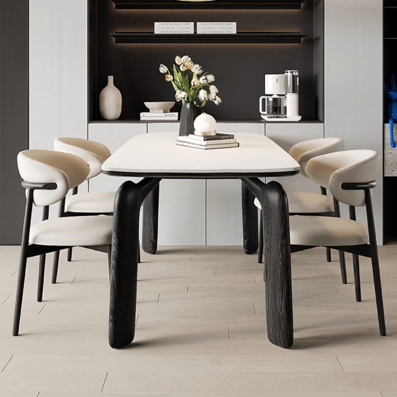 Meja Makan Papan Batu Kayu Solid Gaya Krim Kursi Meja Makan Retro Ukuran Kecil Bentuk Persegi Panjang Sederhana Modern Rumah Tangga Kaki Gajah