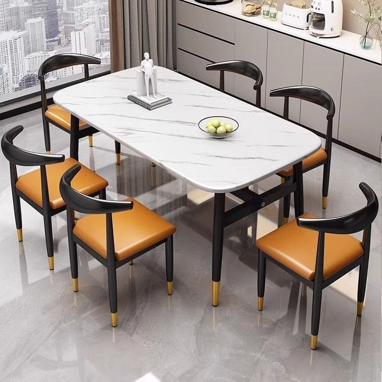 Kombinasi Meja Makan Persegi Panjang dan Kursi untuk Rumah Tangga Mikrokristalin Rumah Tangga Kecil Sederhana Meja Makan Modern Batu Kristal Model Baru Kemewahan Ringan