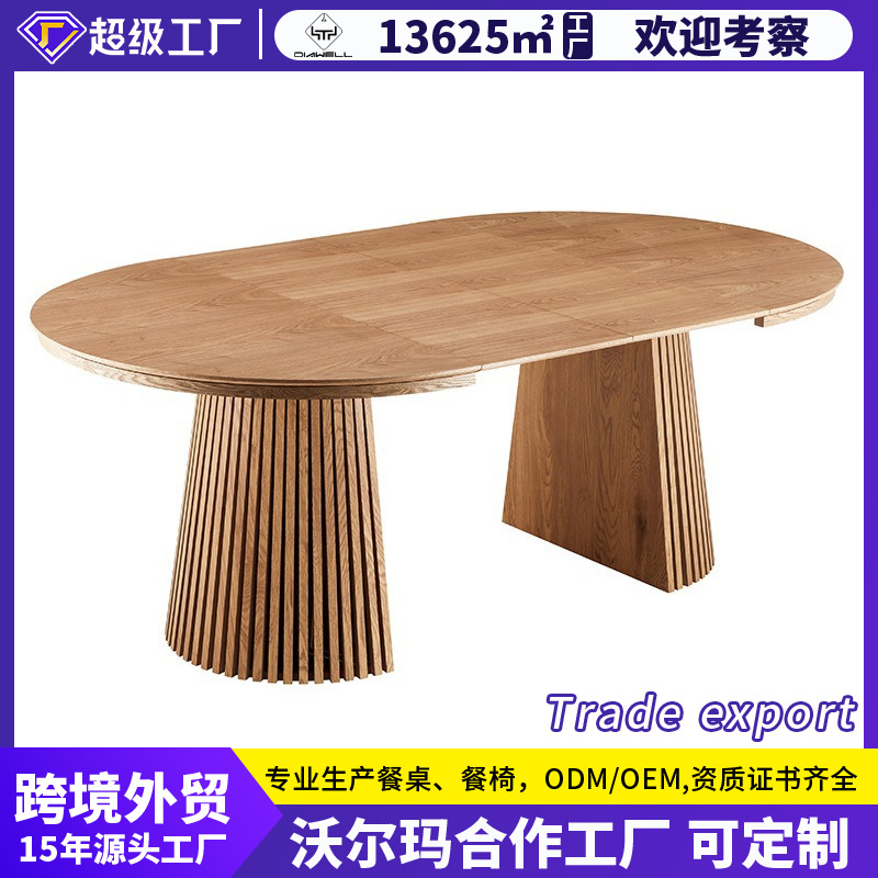 Meja Makan dan Kursi Kayu Solid Kombinasi Rumah Tangga Kecil Lipat Teleskopik Modern Sederhana Warna Kayu Asli Restoran Banyak Orang Meja Bundar