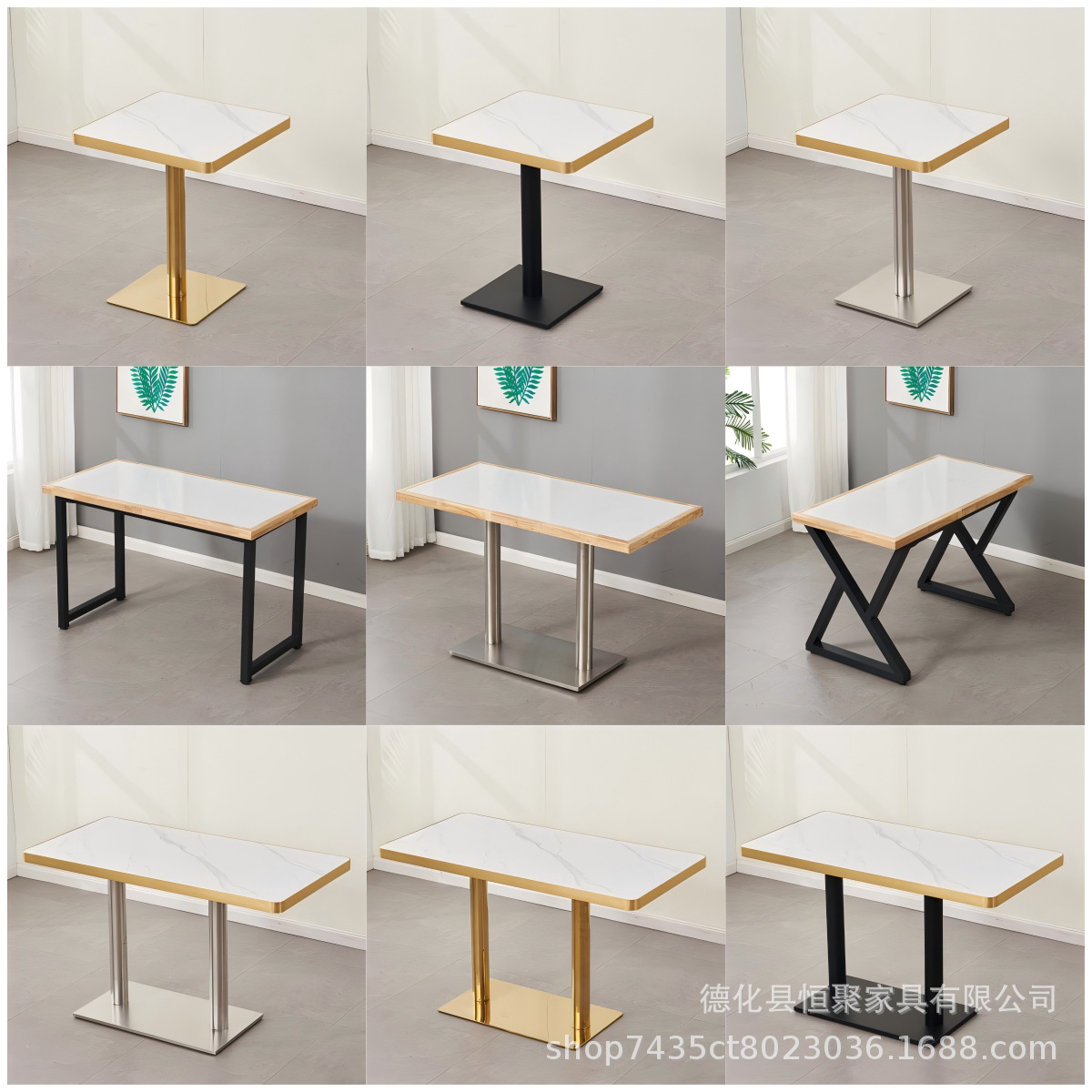 Meja makan restoran Barat, ringan mewah, meja makan dan kursi komersial, Kopi, Teh, restoran, baja antikarat, tepi emas, Meja piring batu
