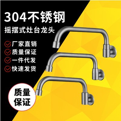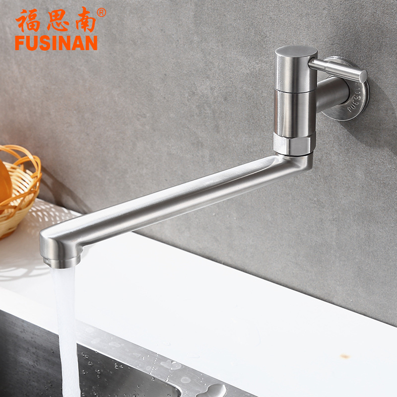 Keran dapur rumah tangga Universal, keran dingin tunggal stainless steel 304 pasang dinding, keran dapur rumah tangga