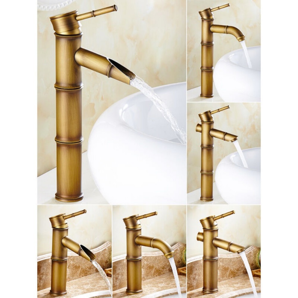 Keran bambu antik tembaga, keran luar ruangan panas dan dingin Eropa retro bak cuci atas artistik