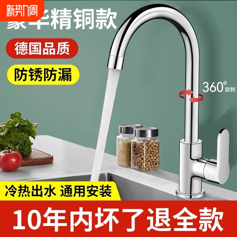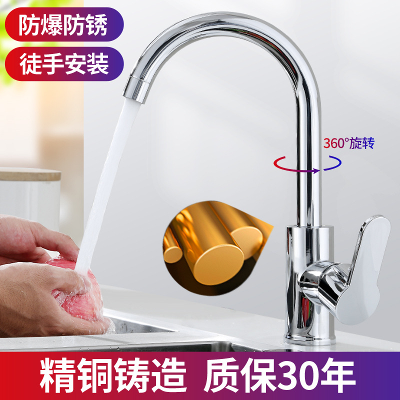 Keran Dapur Tembaga Penuh Keran Cuci Sayur Panas Dingin Wastafel Stainless Steel Wastafel Anti Percikan Wastafel Cuci Piring Rumah Tangga Putar Dingin Tunggal