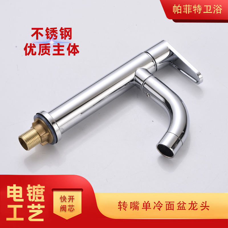 Keran bak cuci dapur, keran air dingin tunggal wastafel tembaga panas rumah tangga 304 stainless steel wastafel katup air dingin tunggal