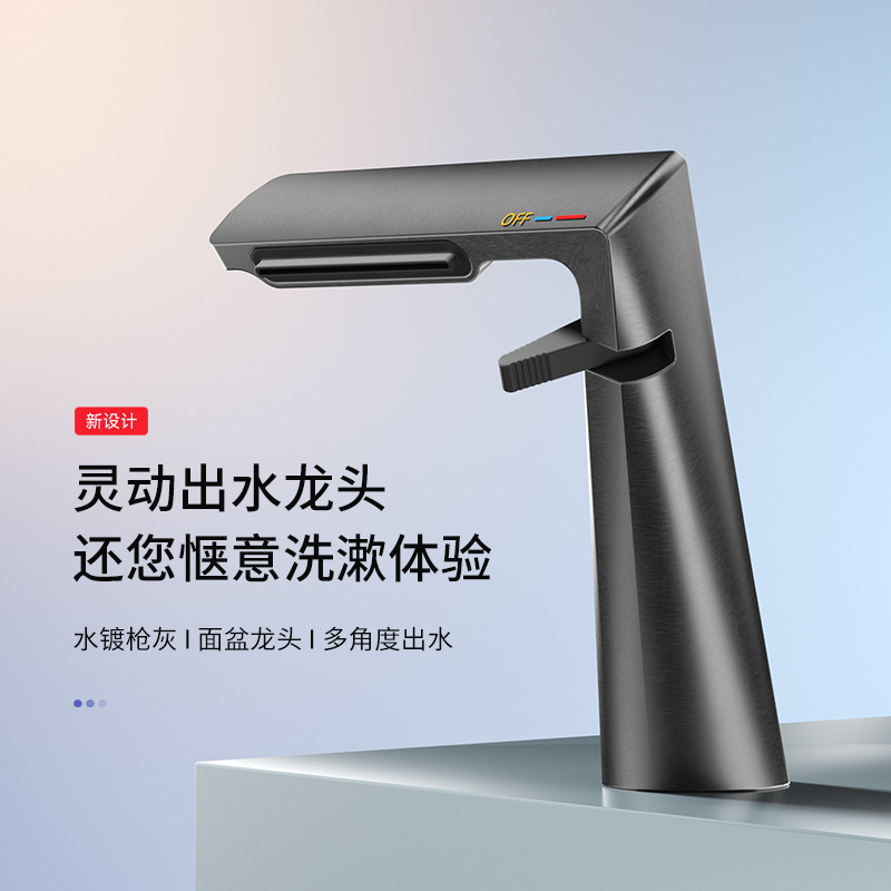 Bionik keran air terjun air panas dan dingin, keran bak mandi kabinet kamar mandi, keran wastafel abu-abu pistol mewah kreatif lintas batas