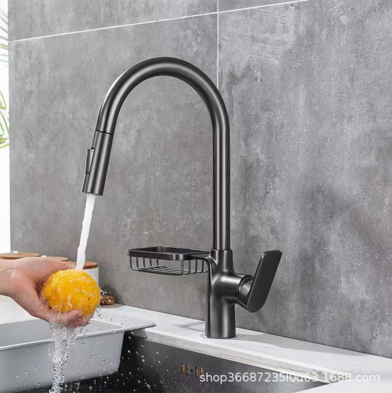 Rak penyimpan strip tembaga penuh, keran dapur multifungsi berputar ditarik keluar panas dan dingin