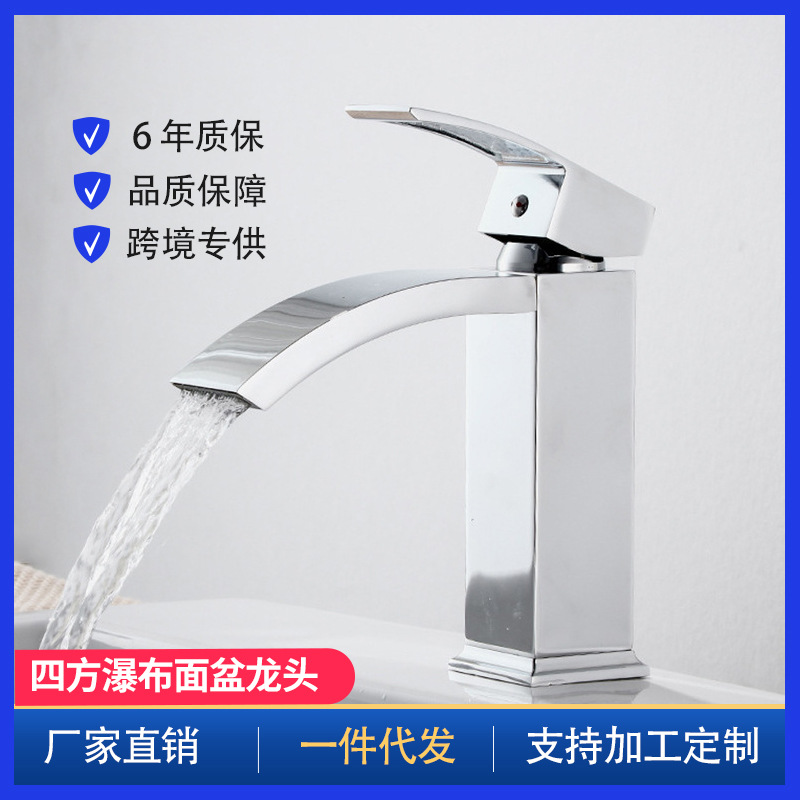 Keran air terjun persegi, lintas batas perdagangan luar negeri keran air terjun tembaga baskom cuci rumah tangga keran lubang tunggal pencampur air panas dan dingin