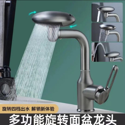 Keran air kamar mandi rumah tangga, keran kamar mandi rumah tangga, keran penguat empat kecepatan, baskom universal selebriti internet lintas batas