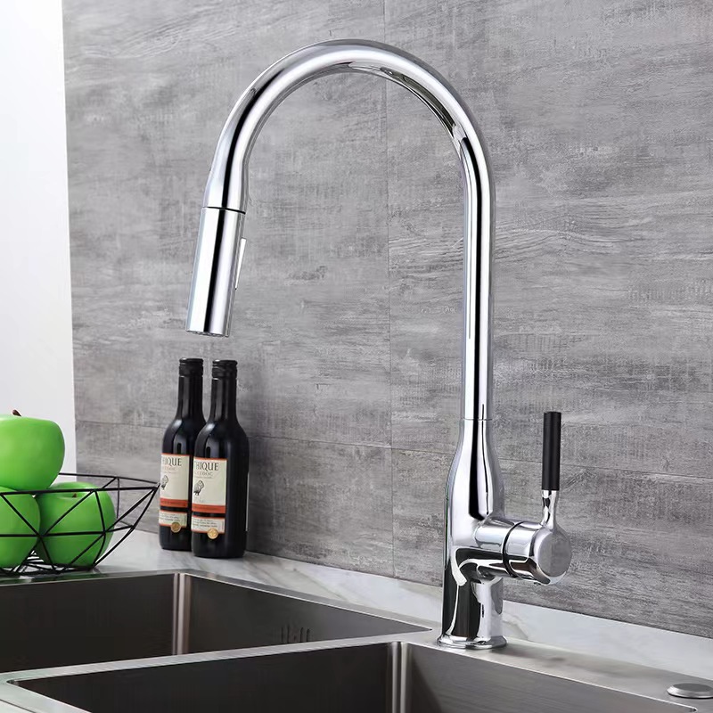Keran botol Guanyin, keran dapur tembaga pull-out universal teleskopik berputar panas dan dingin
