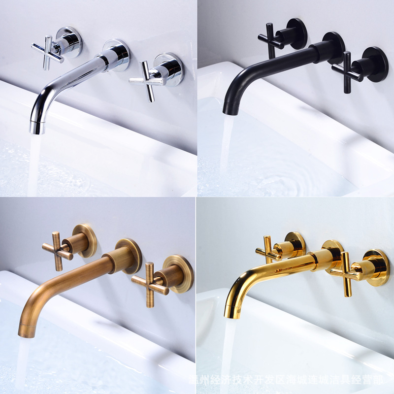 Keran dinding tersembunyi perdagangan luar negeri wastafel tembaga keran saluran air panas dan dingin tertanam hitam