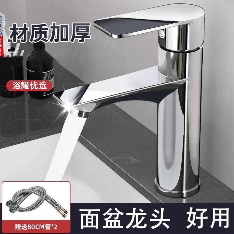 Keran wastafel stainless steel, 304 lubang tunggal panas dan dingin tunggal rumah tangga kamar mandi kabinet wastafel atas