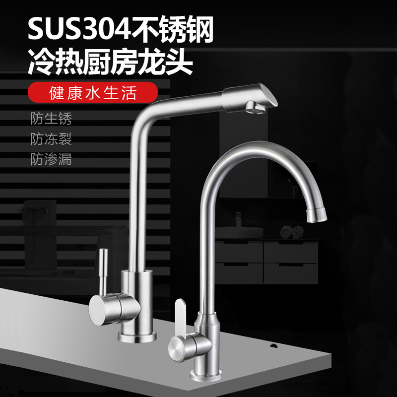Keran dapur 304 stainless steel, keran air panas dan dingin, wastafel pencucian sayuran, wastafel dingin tunggal, dapat diputar, hangat rumah tangga