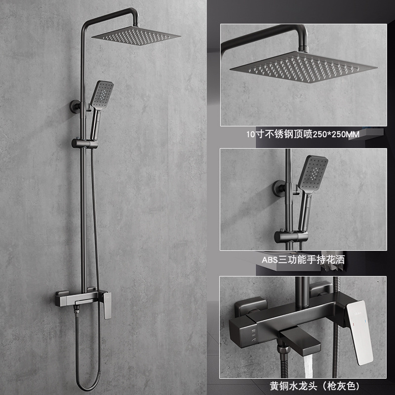Setelan kepala pancuran terpasang di dinding, setelan kepala pancuran hitam panas dan dingin terpasang di dinding warna emas bergaya rumah tangga