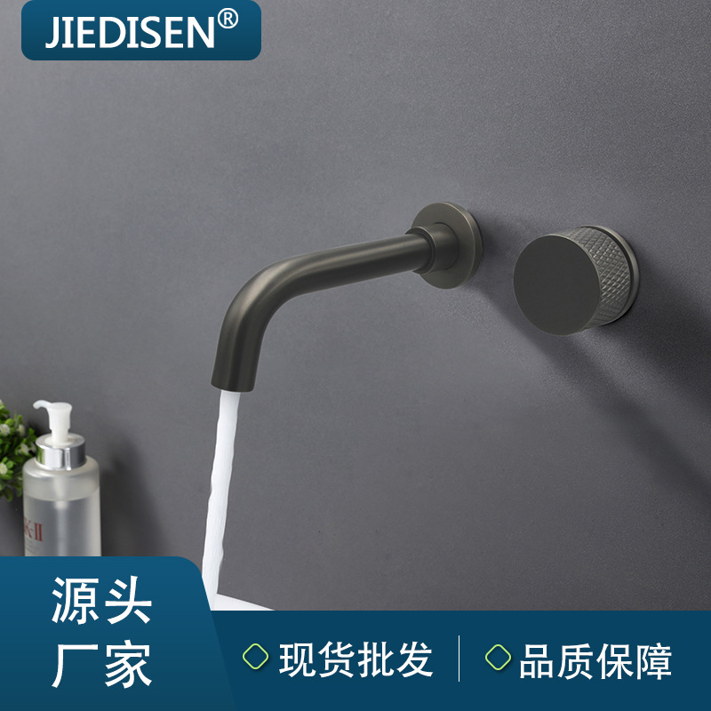 Keran abu-abu dipasang di dinding, kran air panas dan dingin tanam tersembunyi di dinding, keran tembaga lapis emas