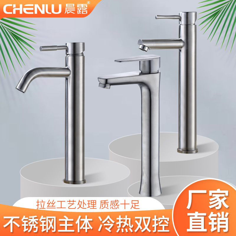 Keran stainless steel 304, keran wastafel platform tinggi mulut melengkung, keran kaca kamar mandi, keran wastafel panas dan dingin