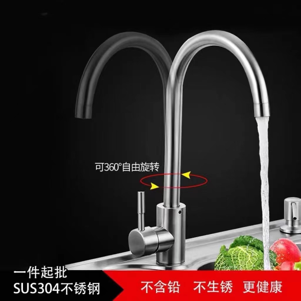 Keran wastafel dapur, keran air panas dan dingin 304 stainless steel, keran wastafel disikat kolam, dapat diputar dengan pipa inlet
