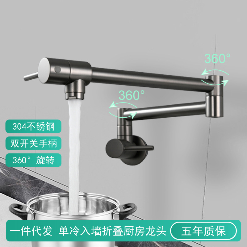 Keran Lipat Stainless Steel Wastafel Dapur Wastafel Tertanam Putar Tunggal Dingin Masuk Dinding Keran Dapur
