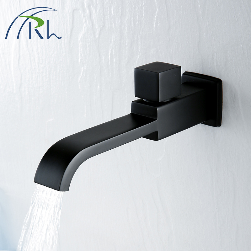 4 poin pel balkon hitam dingin, keran tembaga kamar mandi dipasang di dinding diperpanjang keran kolam Nordik