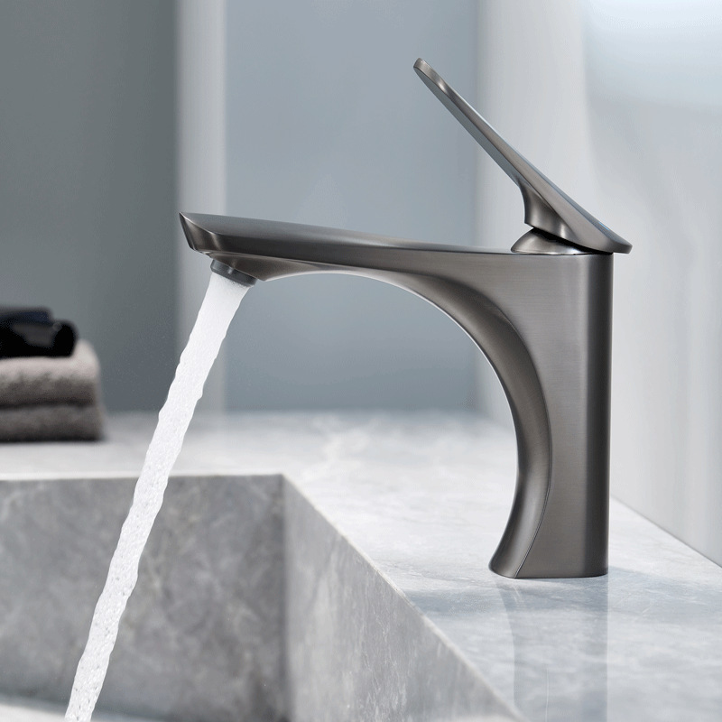 Pistol Basin Abu-abu Keran Keran Basin Panas Dingin Basin Cuci Tangan Basin Kamar Mandi Lubang Tunggal Tidak Ada Wastafel Keran Panas Dingin Anti Percikan