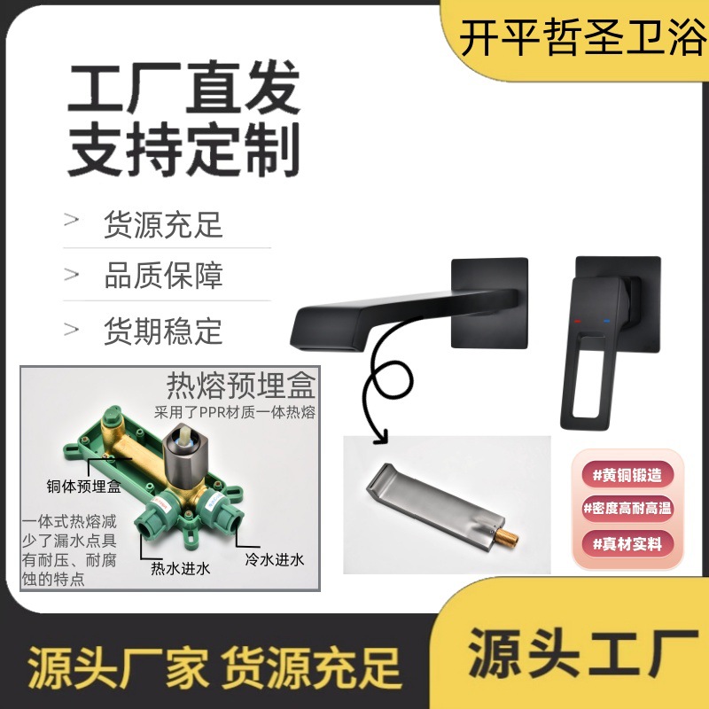 Keran dinding tersembunyi perdagangan luar negeri keran wastafel tembaga abu-abu tertanam keran saluran air panas dan dingin