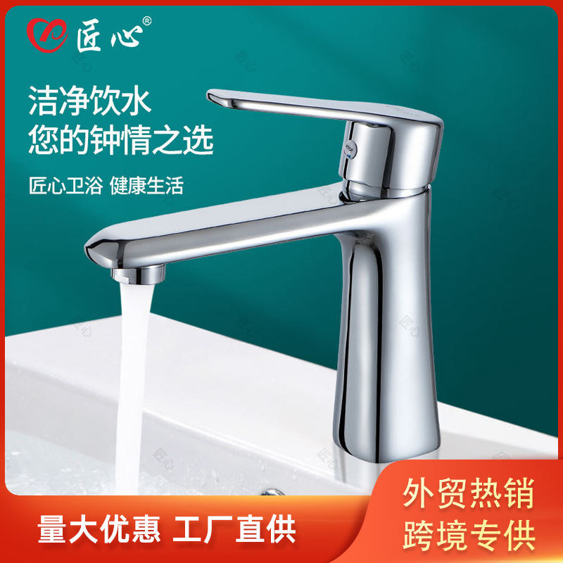Keran wastafel kuningan lubang tunggal, keran wastafel panas dan dingin langsung dari pabrik untuk rumah tangga